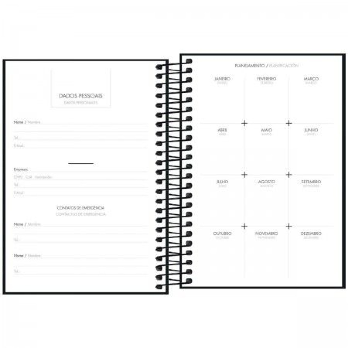 Uma agenda permanente não possui os dias da semana impressos. Isso torna o produto flexível e reutilizável, ideal para anotações e planejamento contínuo sem a limitação de um ano específico.