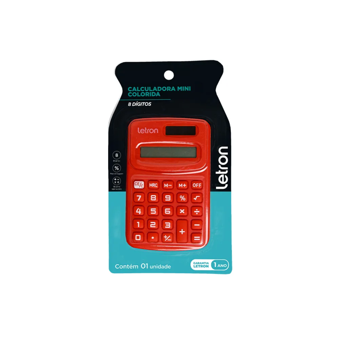 Este clássico continua na moda. A Calculadora 8 Dígitos Colorida Vermelha da Letron valoriza até a decoração da sua mesa de trabalho e de estudos, com um design cheio de cor e divertido. Ideal para realizar as quatro operações básicas e cálculos de porcentagem. Já vem com uma bateria alcalina LR54(AG10/1131). Perfeita para adicionar praticidade e cor a sua vida.