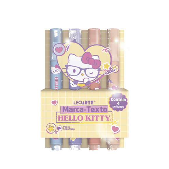 Imagine poder marcar textos, frases e palavras com as cores preferidas da Hello Kitty. Isso é possível com o Marca-Texto Hello Kitty Estojo com 4 Cores Leoarte.
