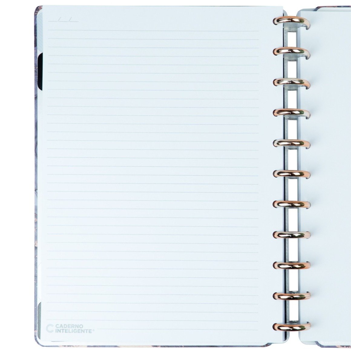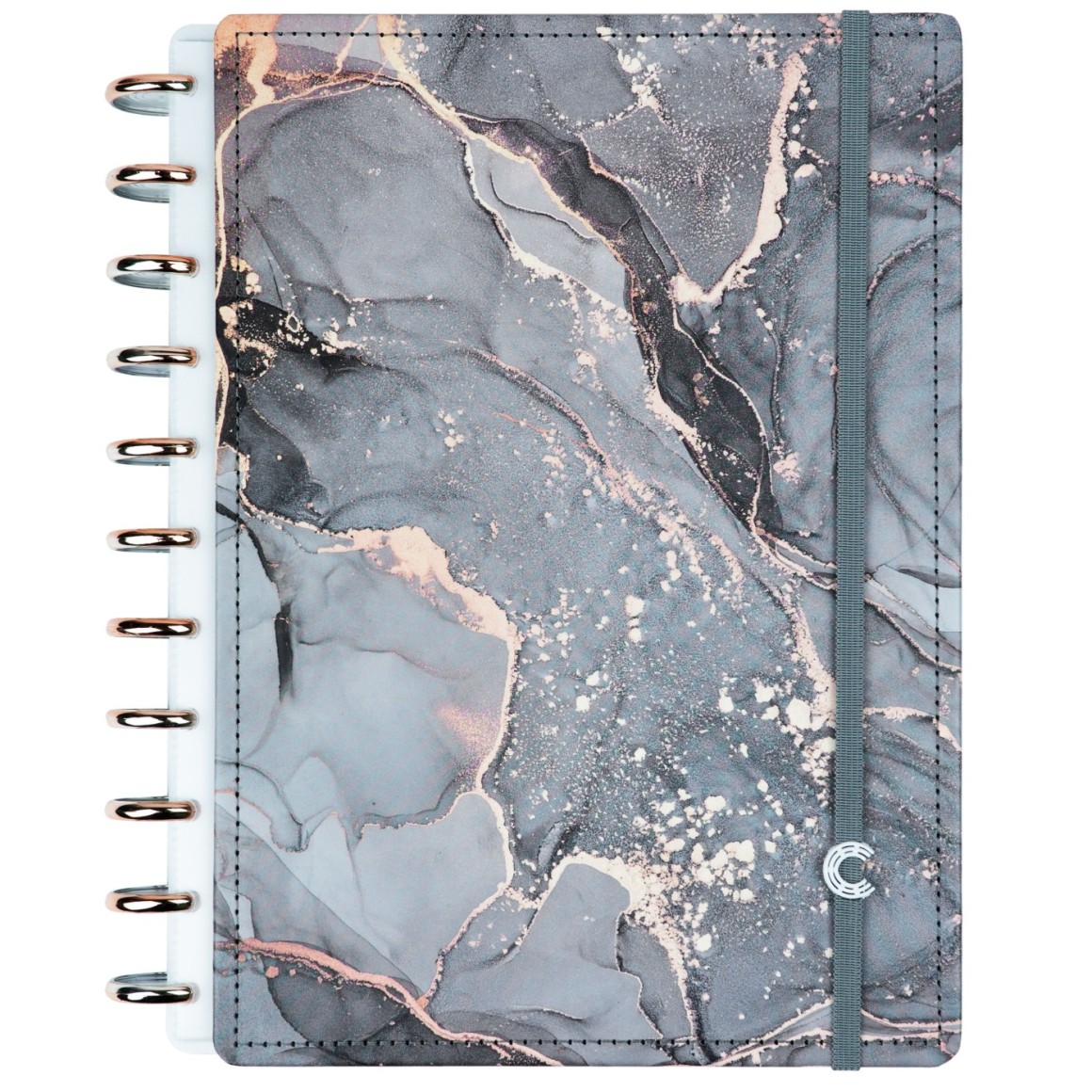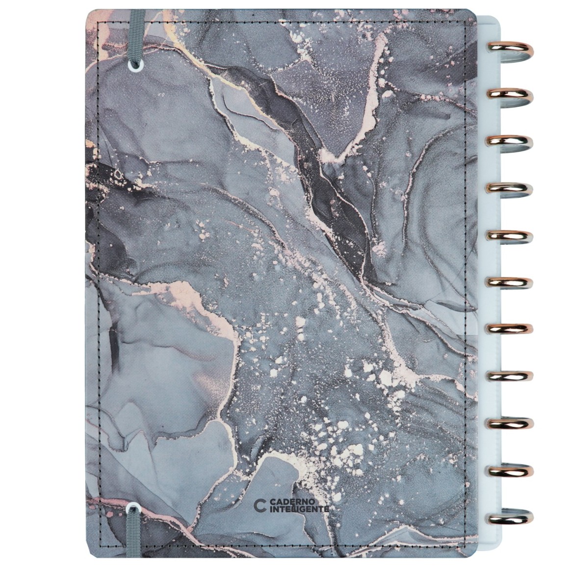 Ônyx é um caderno sofisticado e elegante, na cor cinza chumbo com detalhes em tons constratantes, que remetem aos veios de uma nobre pedra de mármore, que oferecem um efeito visual cheio de beleza para o seu novo BFF.