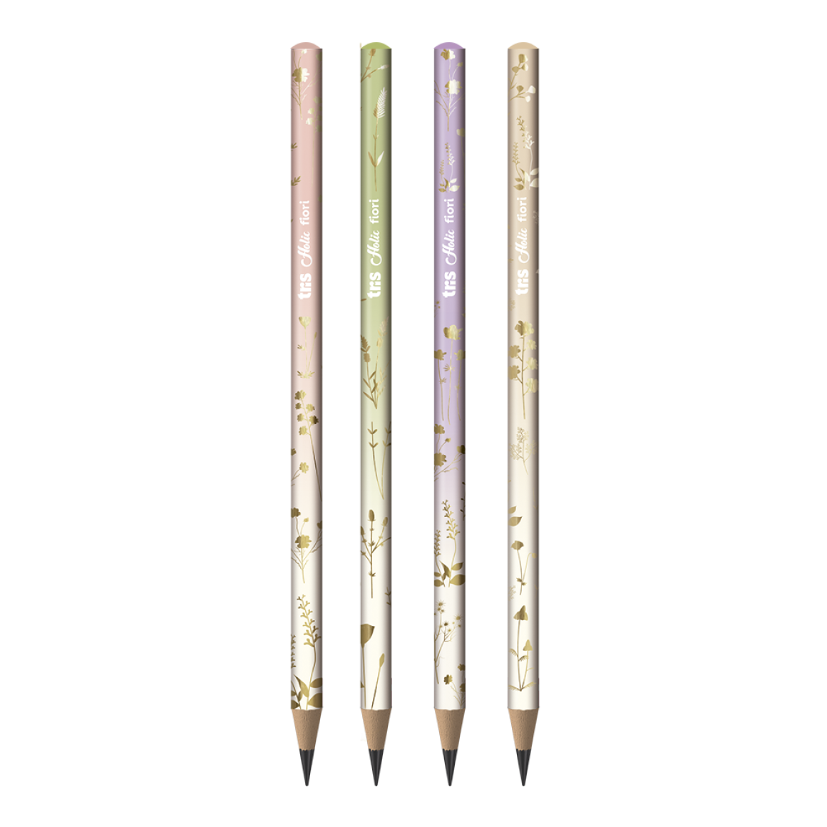 Uma tendência que nunca sai de moda, o floral está em alta com uma abordagem romântica e poética. O mood Delicata explora cores claras e transparência, dedicado à delicadeza e à naturalidade das flores. O lápis grafite Fiori possui corpo em degradê e estampa floral dourada! São 4 modelos super delicados, corpo em madeira e formato redondo.